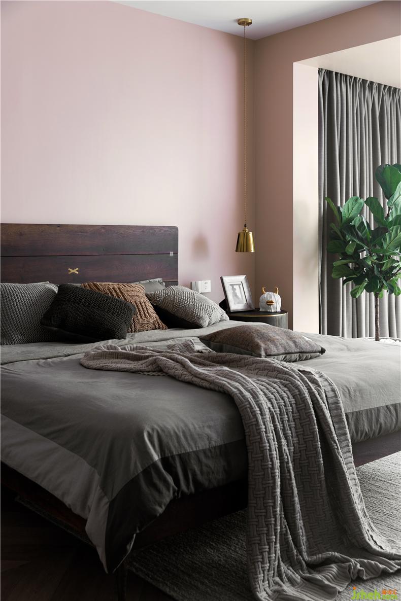 搭配實木床與黃銅吊燈,輕復(fù)古與現(xiàn)代的自然混搭,有一絲文藝,又有一絲浪漫,完美詮釋屋主個性,不失生活品味