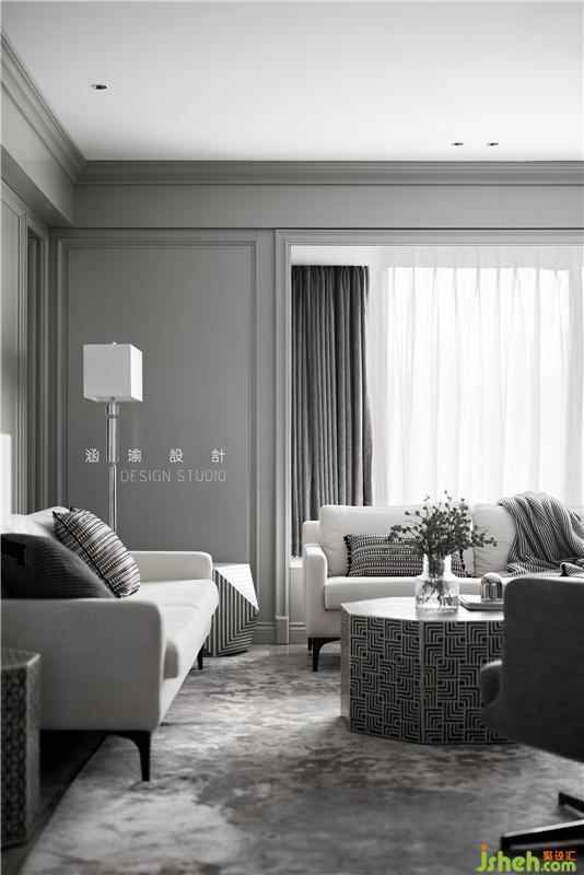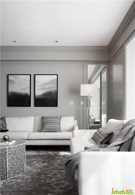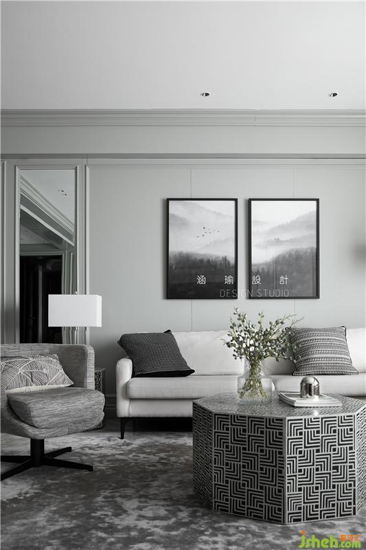 客廳簡單的黑白灰色系,簡單的線條豐盈客廳的立體感,配以米白色的布藝沙發(fā),深灰色單椅,以及八邊形茶幾,家具貫穿于空間的情致之中,增強(qiáng)了客廳的豐富度,賦予空間視覺層次感。