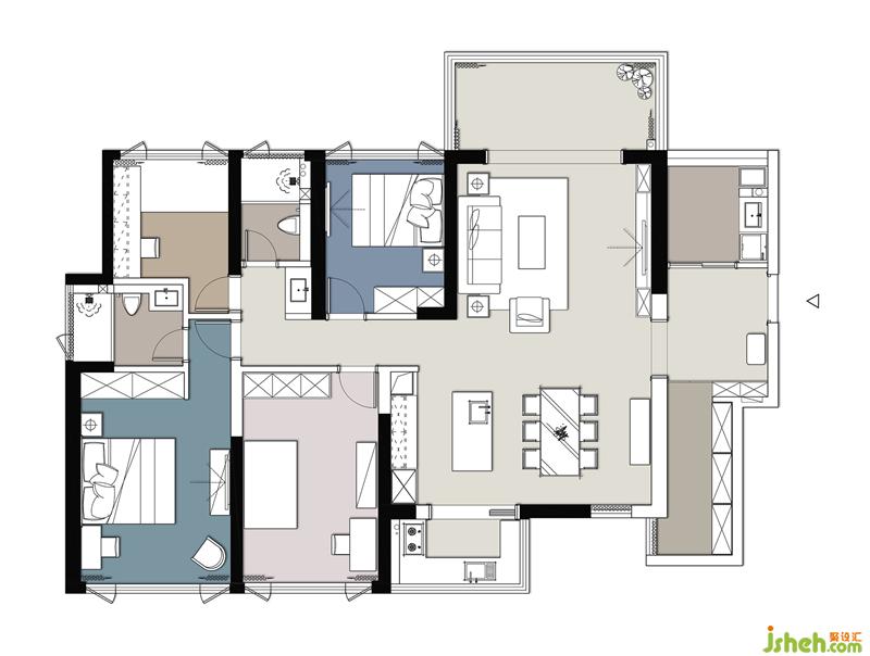 原始戶型基礎(chǔ)相對(duì)較方正,布局并沒(méi)有太大的改變,只是根據(jù)業(yè)主的個(gè)人生活習(xí)慣與使用需求優(yōu)化了空間,稍微做了一部分改動(dòng)。