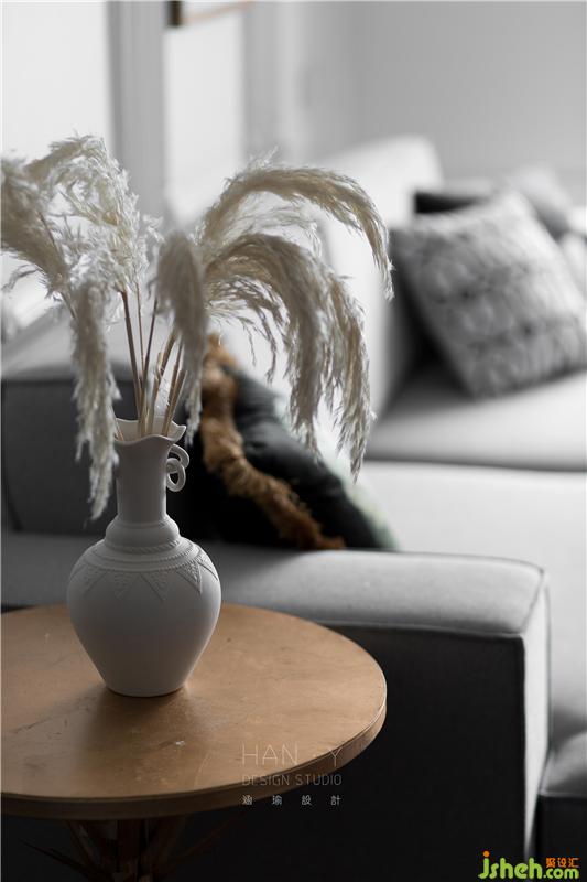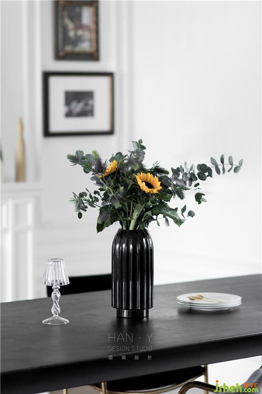 借著透亮的玻璃引入的陽(yáng)光,一幅藝術(shù)感的掛畫(huà)映入眼簾,黑色極簡(jiǎn)質(zhì)感的端景桌時(shí)尚又精致,姿態(tài)柔和的綠植插花,襯托出對(duì)生活的儀式感。