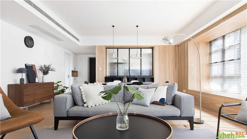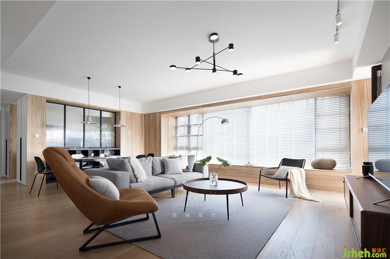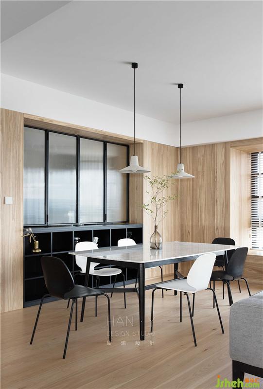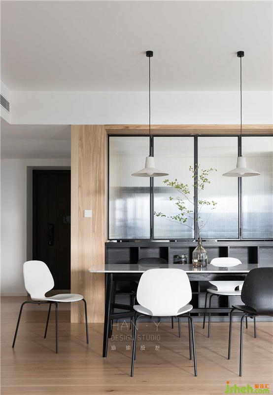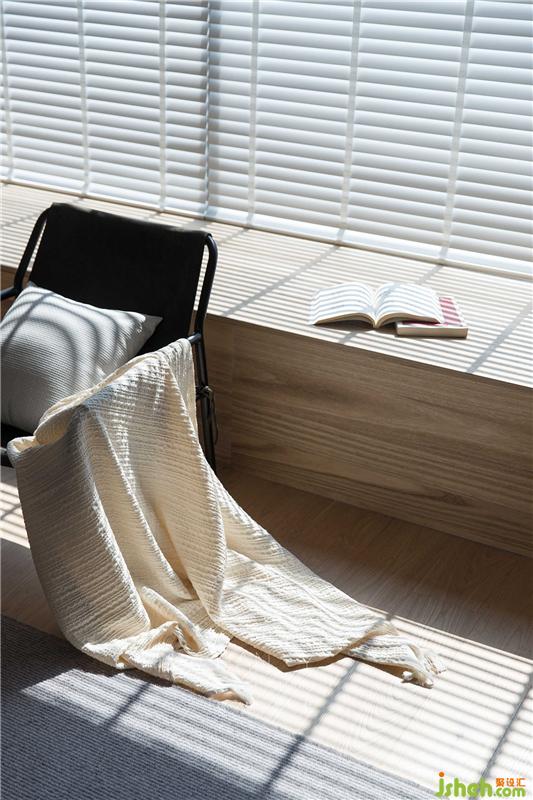 開放式一體化設(shè)計的客餐廳,有意無意的劃分著區(qū)域,將天然材料融入家中,感受溫和柔軟的居家氛圍。諾大的飄窗與百葉隨時恭候著陽光的到來,去演繹不同的藝術(shù)光影。