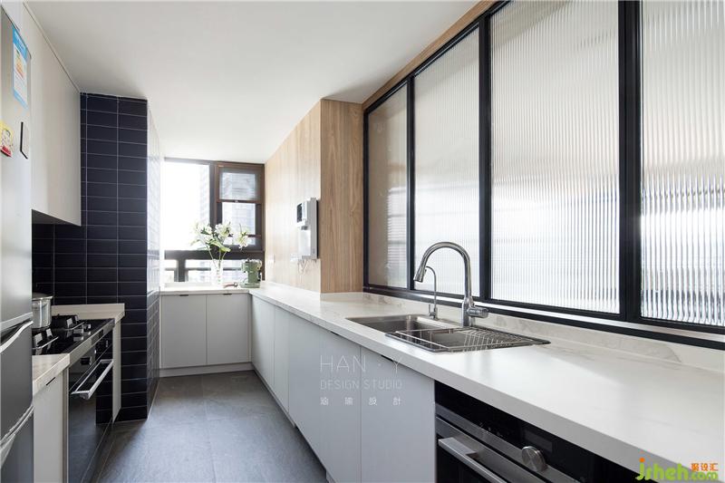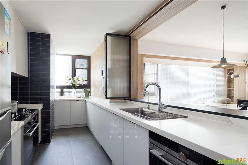 借了客餐廳空間的光,增加了廚房內(nèi)部的采光,明亮通透。在洗碗的時候能看見外面嬉戲的孩子,也即便是一個人在家?guī)Ш⒆拥娜俗黾覄?wù)的時候也能更安心。