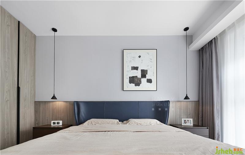 次臥同樣以簡(jiǎn)約質(zhì)感的方式表達(dá),搭配上豐富的微暖色系,柔和的低飽和度色系很耐看,也給人一種簡(jiǎn)約又不失溫馨的感覺。