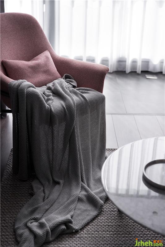 在黑灰空間中,加入木色調(diào)作為點綴,是永不過時的設計。為了平衡空間中大范圍的灰調(diào),加了點綴的嫩粉色,為冷冷的灰調(diào)添加了一絲溫和。