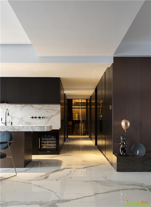 走廊經(jīng)過精煉,在進(jìn)入更私人空間的旅程中散發(fā)出一種穩(wěn)重的感覺。