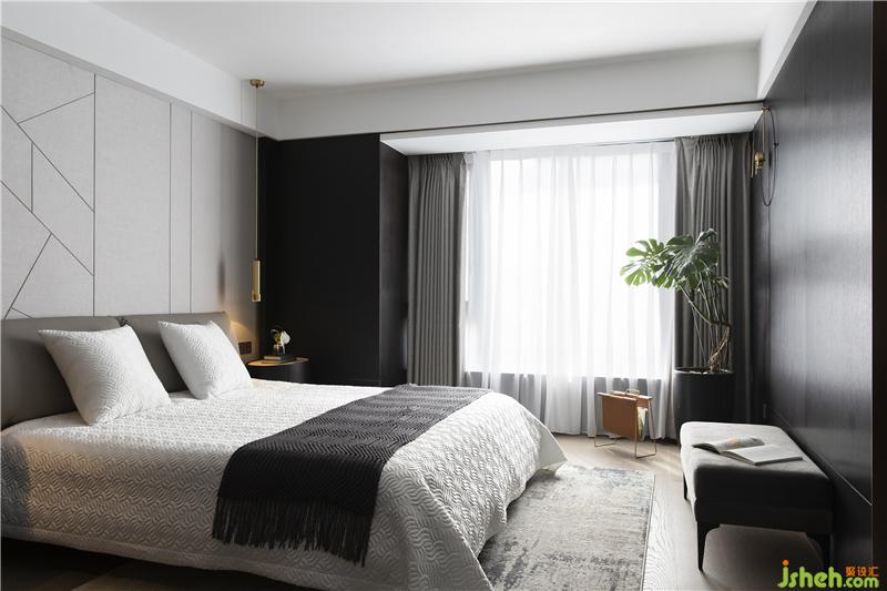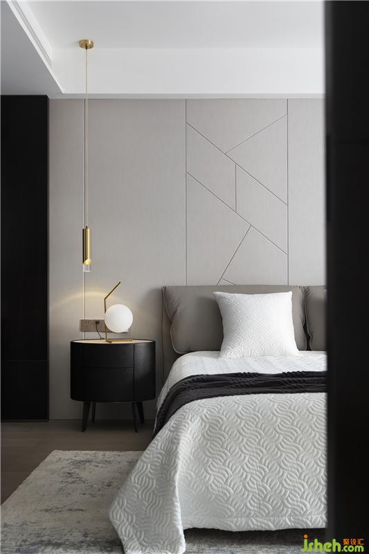 次臥的以簡約素雅作為空間主軸,由灰調(diào)鋪陳,傳達(dá)出溫情而平和的情緒。