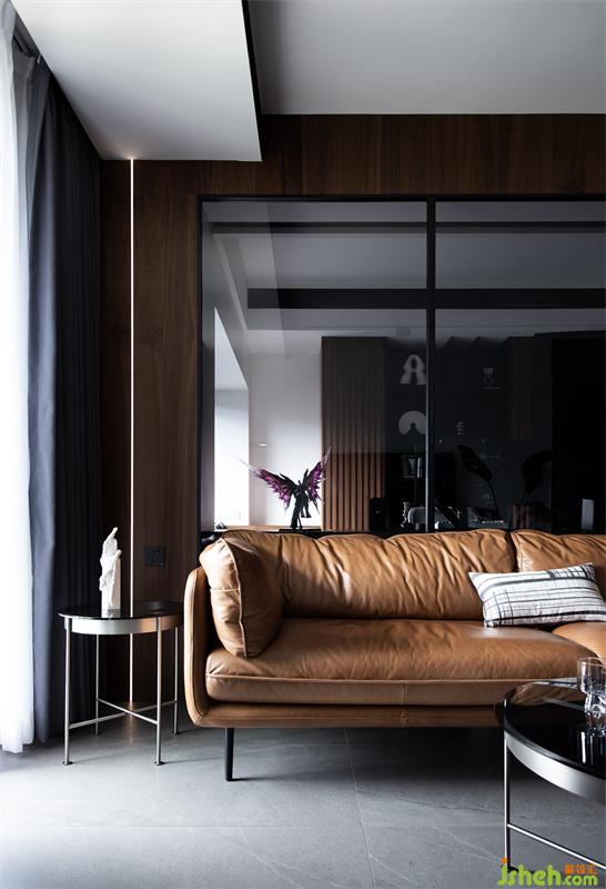 皮面愛馬仕橙沙發(fā)于黑、灰色空間中散發(fā)出一種文雅和煦又帶著些許的幽默紳士氣質(zhì)。也調(diào)和傳遞出空間的溫度。