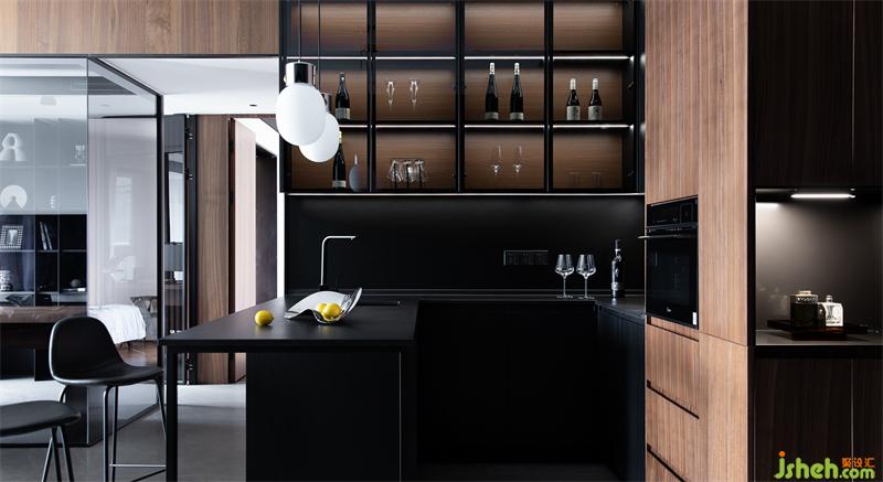 推開黑色玻璃推移門后,也足夠藏下人間煙火氣。棱角塊面分明的簡潔,半開放式的設(shè)計在考量互動體驗(yàn)之余,也讓空間盡顯純粹、干練。