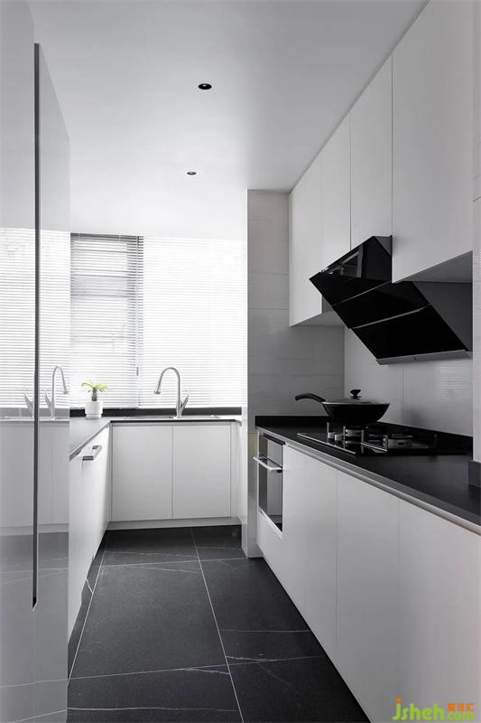 ② 原廚房、生活陽臺兩個空間合二為一,擴大廚房區(qū)域同時增加了采光。