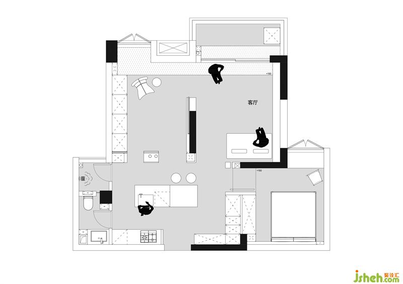 這是一對年輕小夫妻的婚房,原戶型是一個傳統(tǒng)兩房結(jié)構(gòu),深圳家居設(shè)計各個功能區(qū)間相對封閉獨立,采光結(jié)構(gòu)單一,缺少交互性與趣味性。