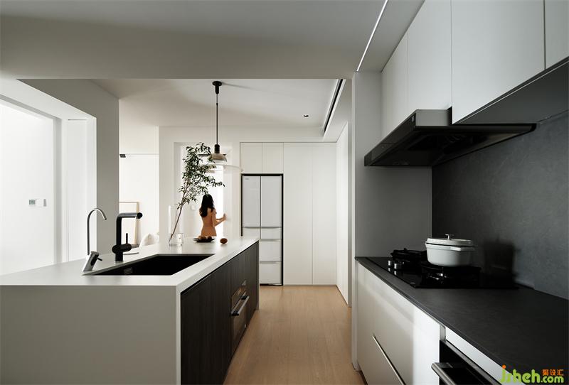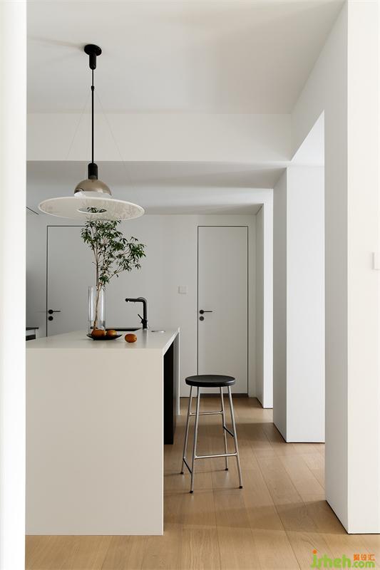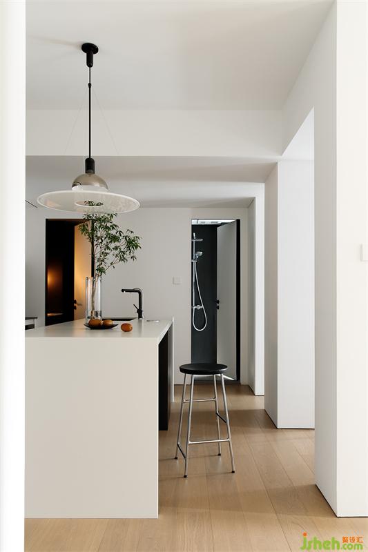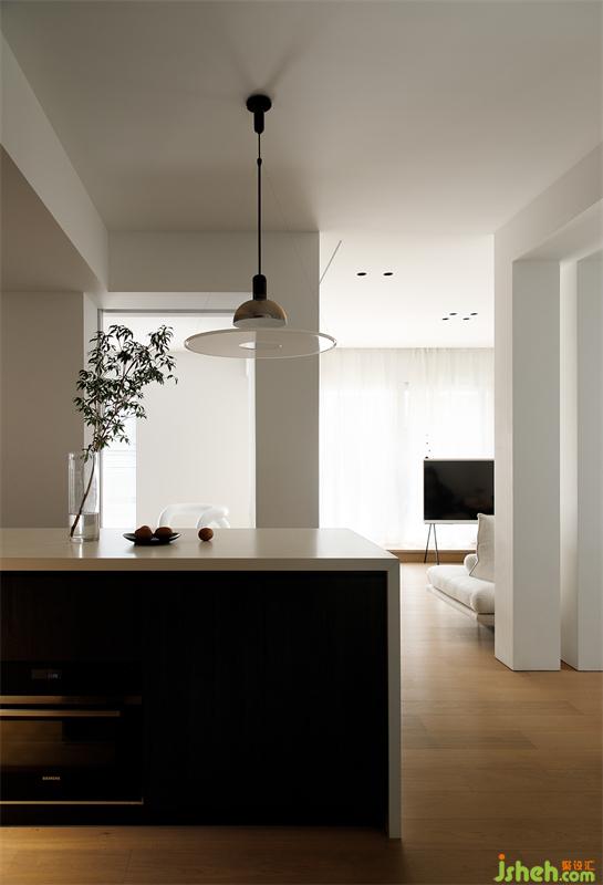 在滿足基本功能舒適性的前提下,釋放了原封閉廚房和洗手間的區(qū)域,打造出超大操作空間的開放式廚房,提升了空間的通透性與拓展性,同時產(chǎn)生既獨立又互動的豐富生活場景。