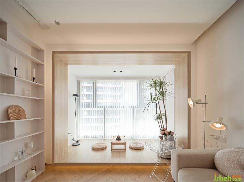 陽(yáng)臺(tái)并入客廳,利用地臺(tái)做出休閑區(qū),6㎡的空間打造出一個(gè)健身區(qū)兼茶室,同時(shí)也擴(kuò)大了空間視覺(jué)感。家裝設(shè)計(jì)平時(shí)女主經(jīng)常在這里健身做瑜伽,大面落地窗的優(yōu)勢(shì),導(dǎo)入了充裕的光線,適宜的綠植點(diǎn)綴,把空間襯托的更鮮活,一旁的收納柜也可以收納大件的健身器材和孩子的玩具,沒(méi)有電視的客廳,為三口之家的生活提供了無(wú)限可能。