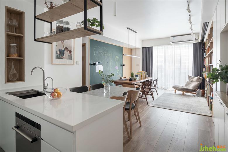 因為家中有兩個女兒和老人,所以這個88㎡的空間更側重于“家庭親子互動”方向,探討了家長與孩子之間的交流和有效陪伴。家裝設計構建出多種親子互動的場景。