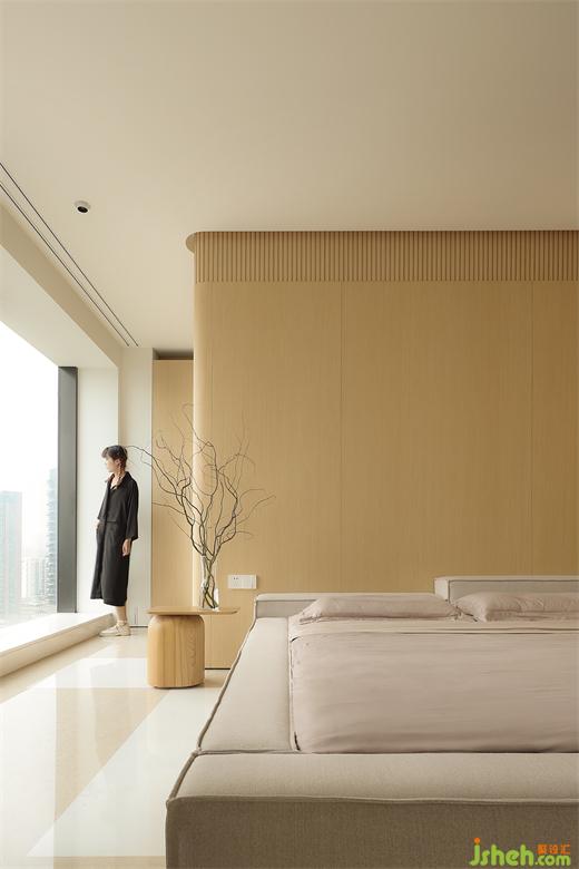 淡化設(shè)計(jì)的痕跡,幫助空間展現(xiàn)其本質(zhì)的魅力。在舒適柔和的臥室環(huán)境中。人們渴望擁有更加私密、不受打擾的狀態(tài)。深圳仁山智水家裝設(shè)計(jì)以疊加開放的空間去承載生活的聯(lián)系,沒有過多的修飾元素,回歸到純凈和舒適。