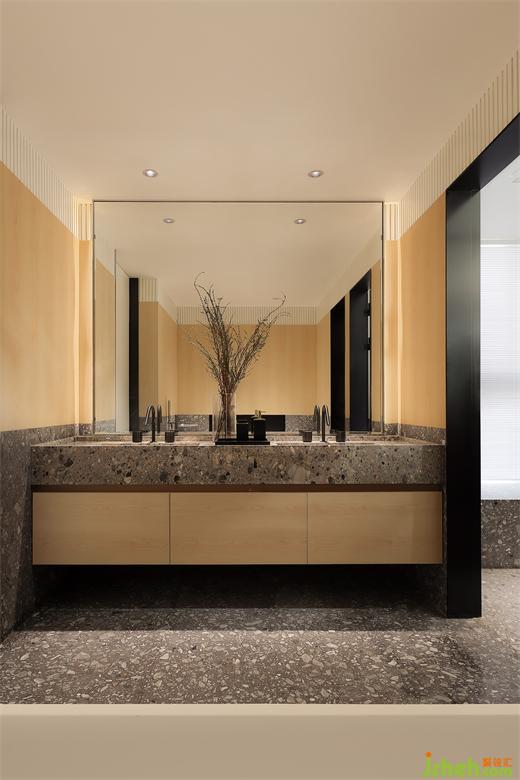 深圳仁山智水家裝設(shè)計以簡潔清淺的設(shè)計語言,通過冷暖材質(zhì)的對撞創(chuàng)造出奇妙的反差感,視覺上產(chǎn)生的強(qiáng)對比效果,為衛(wèi)浴場景增添了豐富的活力與動感。