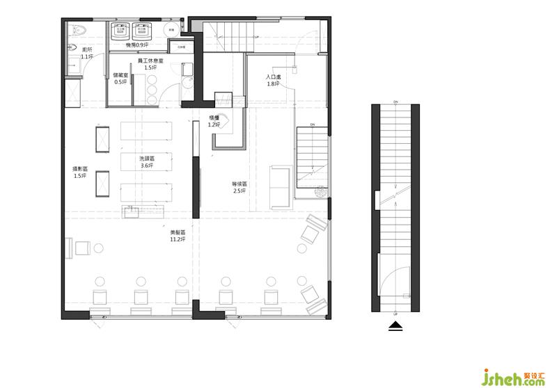 空間格局: 等候區(qū)、造型區(qū)、洗髮區(qū)、員工室、廁所、攝影區(qū)