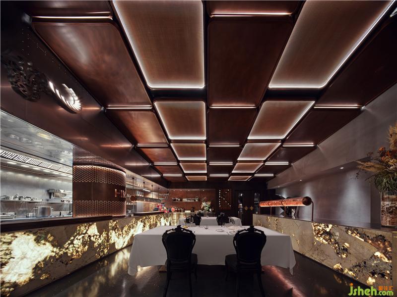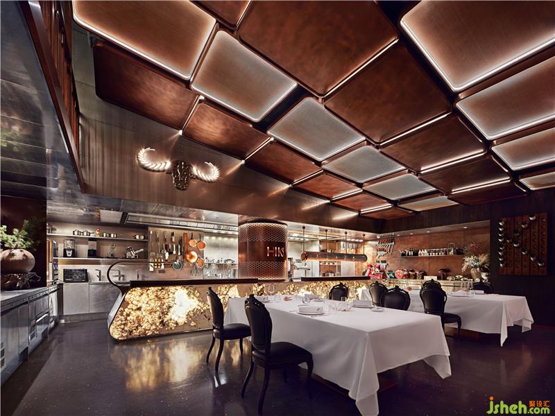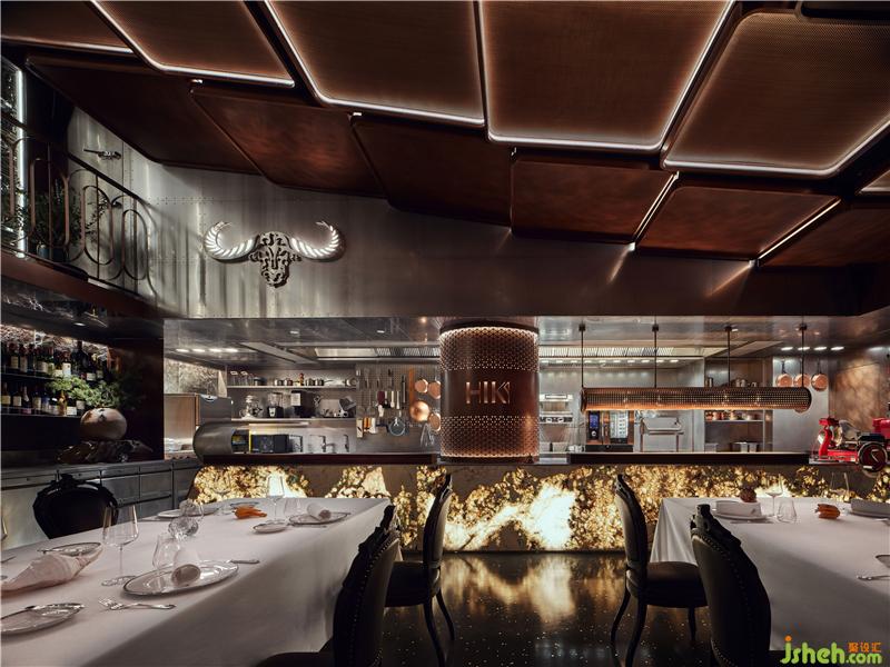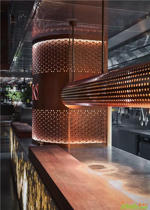 為了和用餐區(qū)整體的環(huán)境相得益彰,保溫?zé)舨捎媒饘倬W(wǎng)藏光的設(shè)計手法,不僅兼顧了實用與美觀,在材質(zhì)和造型上與整個開放式廚房區(qū)相呼應(yīng),并散發(fā)出柔和均勻的燈光,可以使食材本原的面貌和烹飪的過程更能被客人清晰地觀賞到。