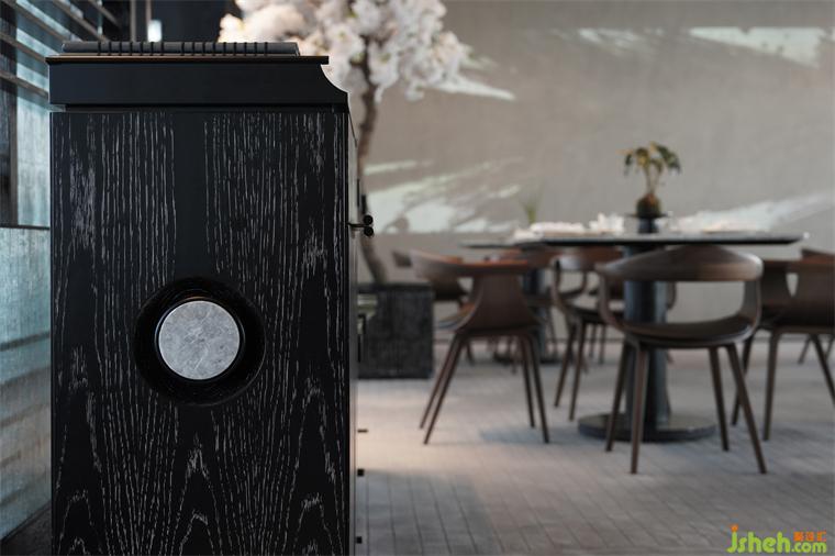 餐廳里每個(gè)細(xì)節(jié)都蘊(yùn)含著豐富的象徵意義。在電梯大堂的空間裡,迎面是一個(gè)傳統(tǒng)中國(guó)園林常見(jiàn)的月門(mén)。圓與方的形狀,有著中國(guó)古代“天圓地方”的哲學(xué)思想。穿過(guò)月門(mén)后便進(jìn)入這個(gè)融合美食、文化和創(chuàng)意的餐飲世界。