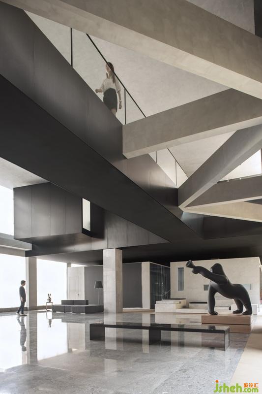 空間的天花板并無任何一盞燈,取消晝?nèi)照彰?,而是利用地面光束的漫反射來實現(xiàn)照明?;蛟S只有在夜幕降臨時,才會被人訝異這設(shè)計,可以如此感受到一天的自然氣息變化。