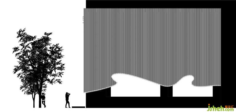 建筑底部起伏的曲線(xiàn)感,含蓄地表達(dá)了布的特性,柔曲和可創(chuàng)造性。