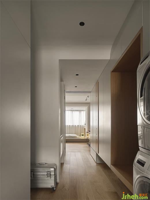 有了充足的過道空間之后,裝修公司設(shè)計(jì)師把鞋柜和洗衣區(qū)安排在了這里。