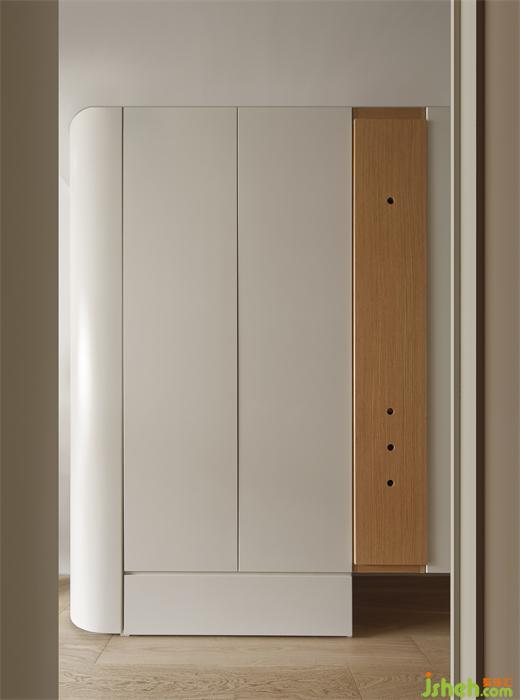 從玄關(guān)延伸而來的淺色柜體,裝修公司擴(kuò)大了整體上的視覺效果,是家里的主要收納區(qū)。