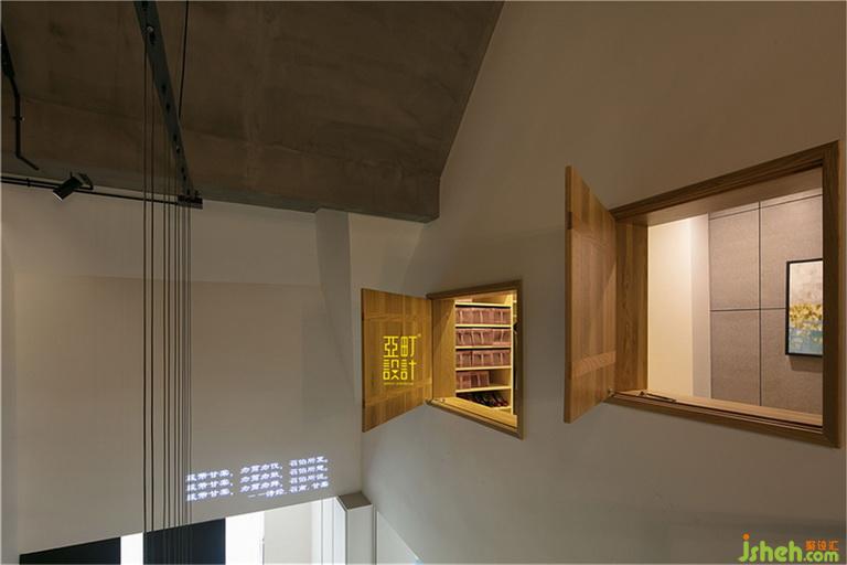 首先映入眼簾的是7.5米挑高區(qū)——餐廳區(qū)域,也是整個家里的靈魂區(qū)域,用餐、party、看電影、手工制作等都集中在這個通透的區(qū)域,背部是紅色文化磚的到頂鋼板書架與左側(cè)的白墻形成疏密對比,兩扇錯落的小木窗及格子鐵藝扶手是一層與二層的連接窗口。