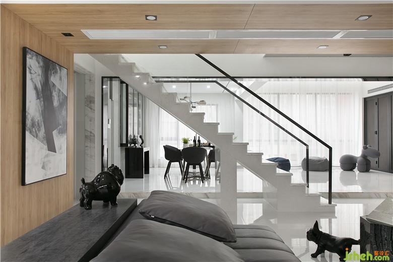 本案業(yè)主系兩位從事時尚事業(yè)的業(yè)主,追求比較純粹的空間,喜歡干凈明亮的空間感受。室內(nèi)設(shè)計師采用大面積不同質(zhì)感的白色材質(zhì)做為畫布,利用黑色不銹鋼線條元素作為畫筆勾勒出空間流線。地面全部純白色地磚,白色烤漆柜門,白色大理石電視背景墻,搭配大塊面溫和質(zhì)感木飾面,在墻面和天花上采用線條元素進(jìn)行空間延伸,塑造出空間之間的聯(lián)系。大客廳背景裝飾用到了木絲水泥板做構(gòu)成處理加上藏?zé)?。柔光與灰調(diào)碰撞,冷淡與熱情都恰如其分的點(diǎn)綴進(jìn)我們空間內(nèi)。