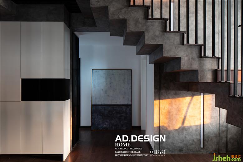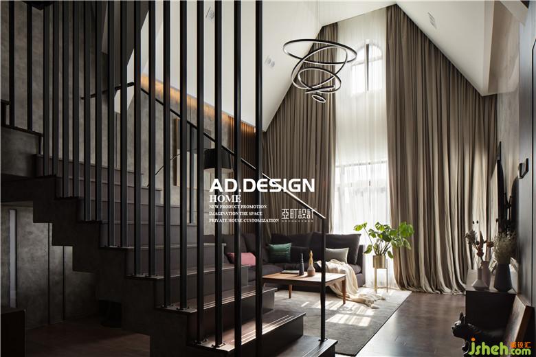 這是一個(gè)頂層復(fù)式,一樓的房高過(guò)高而二樓的房高又過(guò)矮,上樓的踏步比正常要多上幾個(gè),上樓還容易撞到頭,因而樓梯的設(shè)計(jì)是室內(nèi)設(shè)計(jì)師一個(gè)很大的難點(diǎn)。