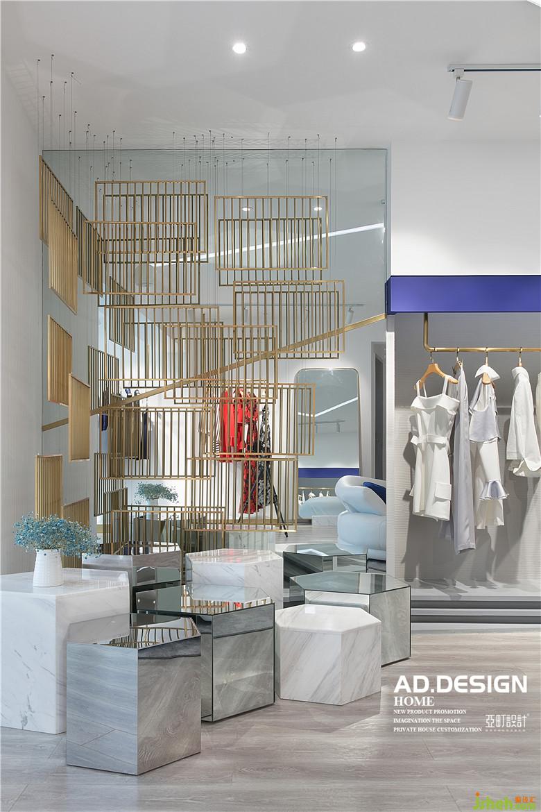 該店坐標(biāo)北辰定江洋,業(yè)主是老板兼美女服裝設(shè)計師,有著高顏值和魔鬼身材,同樣也是自己服裝品牌的最佳模特。店內(nèi)室內(nèi)設(shè)計師整體以白色為主調(diào),用寶藍(lán)色、金屬色、淺灰色調(diào)為空間打造既富有層次感,又能展現(xiàn)出摩登時尚的視覺效果。極簡風(fēng)格運(yùn)用最多的就是黑白灰,想要讓空間亮起來就要看如何控制好細(xì)節(jié)。