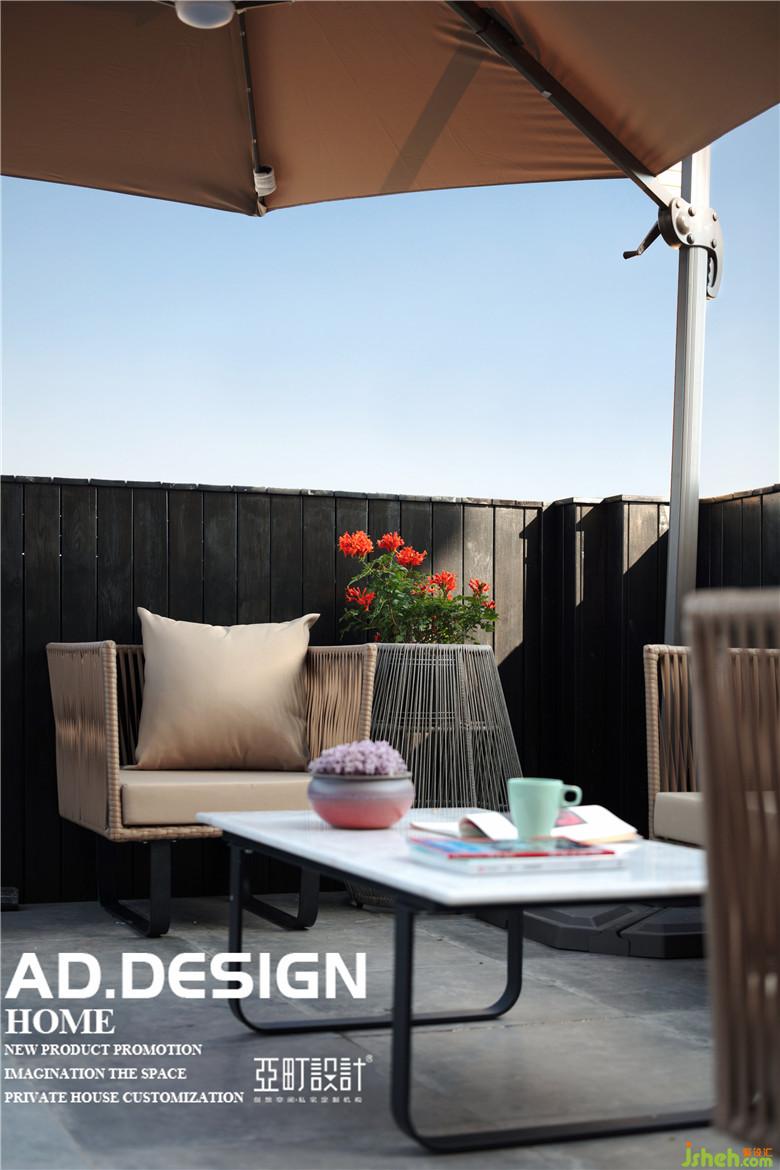 一樓露臺(tái)墻面室內(nèi)設(shè)計(jì)師采用了接近黑色的防腐木,與室內(nèi)的黑白灰現(xiàn)代感設(shè)計(jì)相呼應(yīng)。露臺(tái)上做了踏步和抬高,增加了露臺(tái)的層次感。