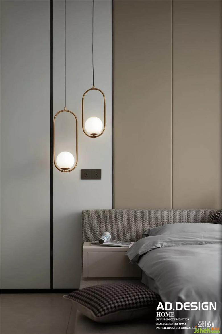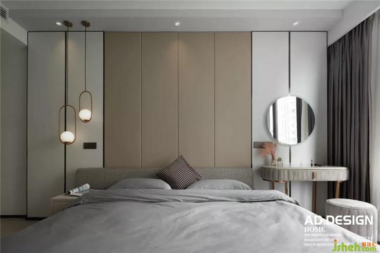 另一側(cè)是帶有鏡燈的梳妝臺區(qū)域,