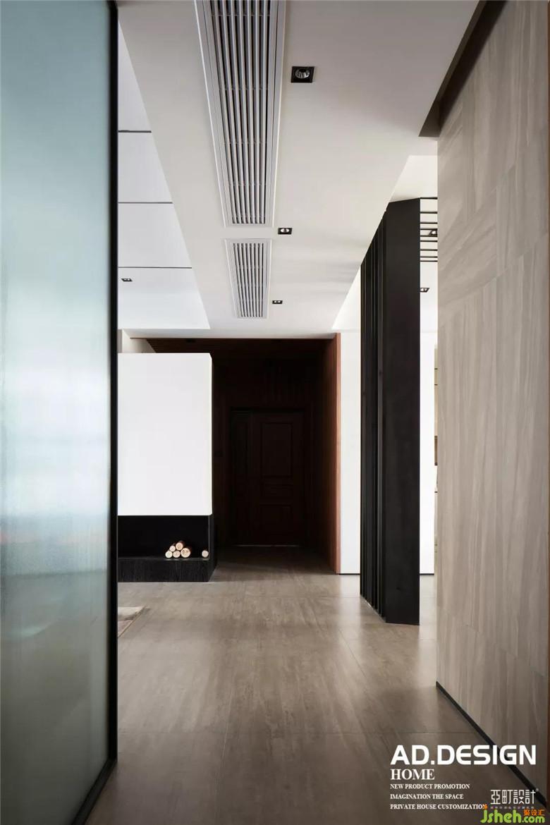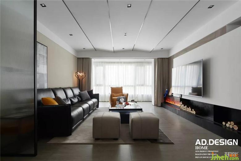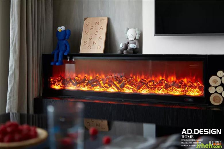 天花交錯(cuò)層疊的節(jié)奏感,不銹鋼線條的空間流動(dòng)感、結(jié)構(gòu)交錯(cuò)硬朗的線條、黑白灰色塊分明的電視背景墻體、絲絲火光的黑色壁爐、根根分明的木材堆,裝修公司將這些元素像小精靈的畫筆,一筆一筆讓空間更顯靈動(dòng)。