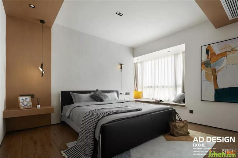 幾何結(jié)構(gòu)頂面、木飾面墻面、紋理感壁紙、是這個空間的面貌,裝修公司配上設(shè)計感的壁燈和色塊拼接畫裝點(diǎn)了這一室的溫柔時,多了一份色彩的跳躍愉悅。
