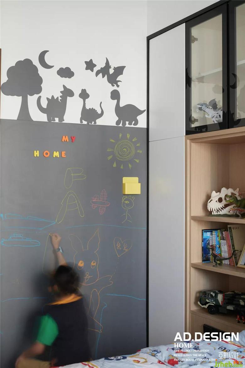 同色系的裝飾畫搭配整體空間的線條感,KAWS玩偶是小精靈給男孩的禮物,也成為了整個空間的點(diǎn)綴。
