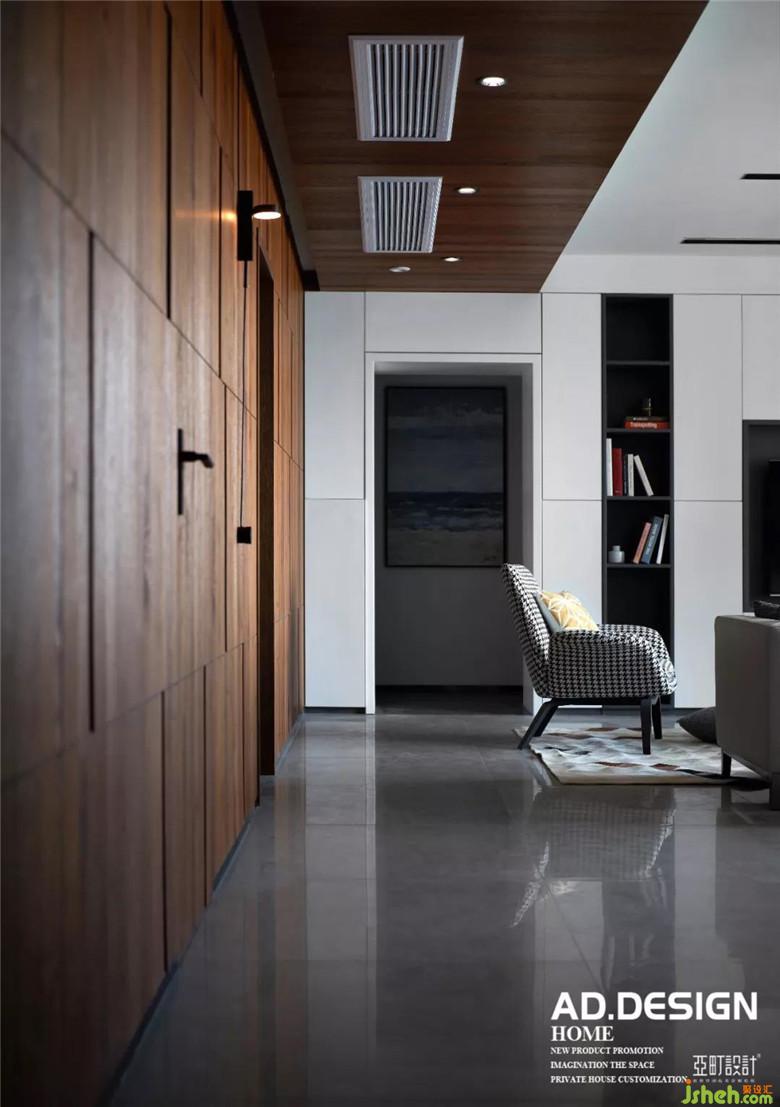 入戶在原始結(jié)構(gòu)上對原墻體做了一些調(diào)整,將鞋柜內(nèi)嵌進墻體,從入戶連結(jié)過道設(shè)計一整面的木質(zhì)背景墻面,裝修公司將臥室和廚房的門也融合在其中,頂面與墻面的木質(zhì)組合構(gòu)建出整個空間的視覺中心點,定下全房的主體格調(diào),在過道盡頭一整面柜體式的電視背景墻面,既創(chuàng)造一個簡約大方的視覺感官,也具備強大的家居儲納功能。