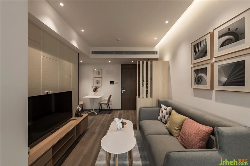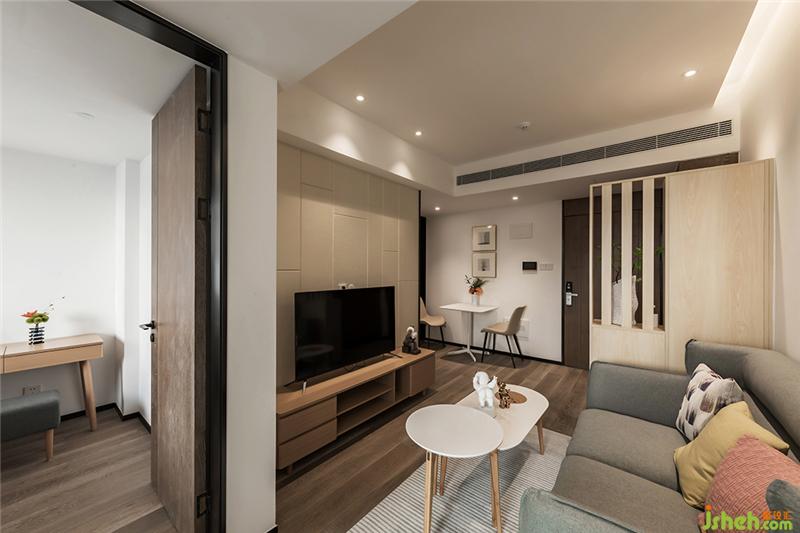 整個空間的吊頂沒有做任何修飾,就是平吊,刷白。遇到有梁的地方和空調(diào)內(nèi)機(jī)的地方就用高低疊級的處理方式解決深圳樣板房設(shè)計。整體做完簡單大氣,不做多余的手法,還節(jié)省了不少預(yù)算。