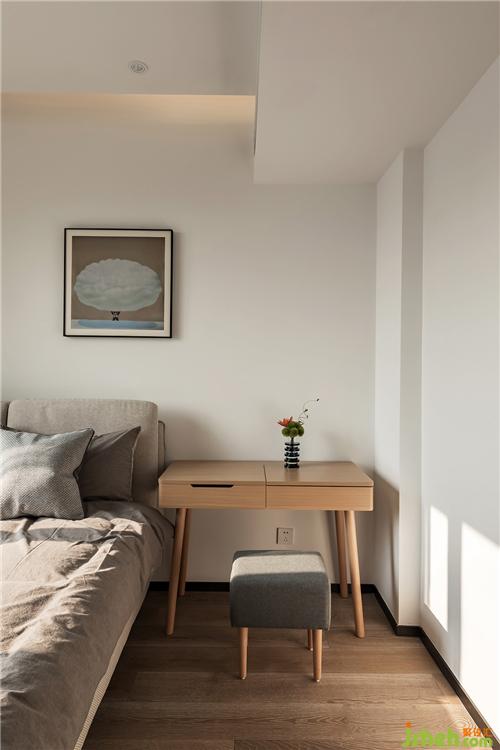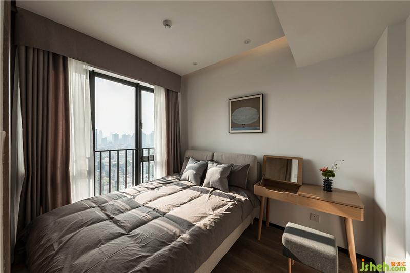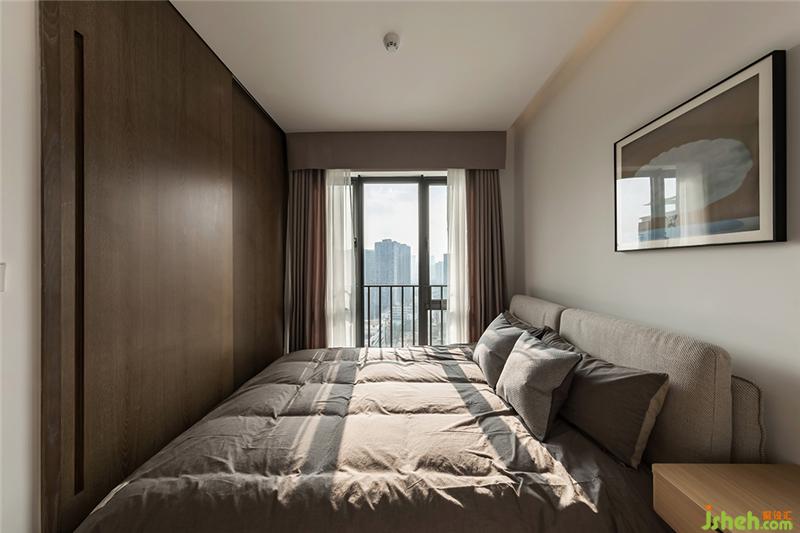 沿用公共區(qū)的簡(jiǎn)介,臥室的軟裝部分,用深咖及灰調(diào)子營(yíng)造出溫馨的環(huán)境深圳樣板房設(shè)計(jì)。