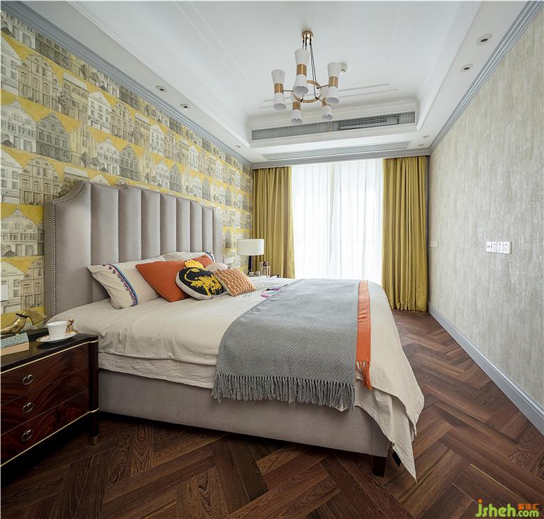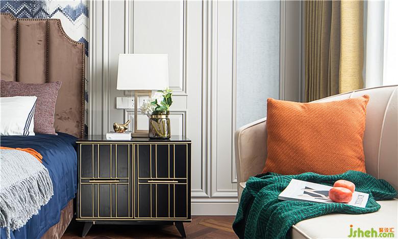 臥室散發(fā)著濃郁的美式情韻,醇美的軟飾和色彩,質(zhì)樸的淺灰色柔雅而安謐,凝結(jié)著高端而沉穩(wěn)的品位和質(zhì)感。幾何語(yǔ)言的紛繁典雅,搭配深棕色家具框架的線條感、水晶臺(tái)燈的剔透雅致,讓空間的魅力在無(wú)言中綻放升級(jí),兼容細(xì)膩的柔美與輕奢的風(fēng)華。