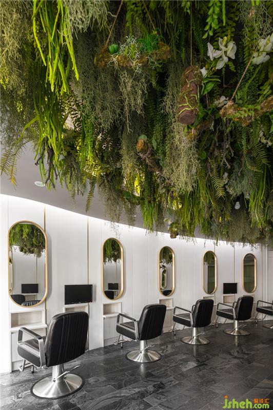 捕捉花園的美好及擷取花草的意象以繁盛及雅致為入口,布滿空間頂及環(huán)繞于空間中,讓人初到時(shí)被茂密花園包圍,襲心動(dòng)人,仿佛抽離自己,靜置于一自然花園之中格外隱秀恬謐。