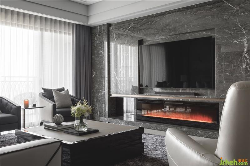 設(shè)計(jì)以水墨屏風(fēng)來界定空間定義,金屬分割更強(qiáng)調(diào)出整體層次感,看似大量的沖突,在屏風(fēng)背后產(chǎn)生的卻是另一種英式語匯,以壁爐為中心貫穿整體空間縱軸線,搭配深色木質(zhì)地,溫潤肌理豐美的大理石,體現(xiàn)整個(gè)空間品質(zhì)的要求,延伸出居所的內(nèi)斂與穩(wěn)重。