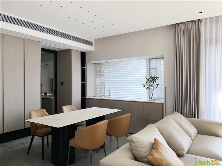 厚墻打薄增加空間的使用面積,書房位置打開,使客餐廳空間更大,深圳家裝設(shè)計通風(fēng)采光效果更佳,滿足業(yè)主需求在簡約風(fēng)中,墻面沒有過多的修飾,大面積木飾面使整個空間更佳簡潔,塊面明確。
