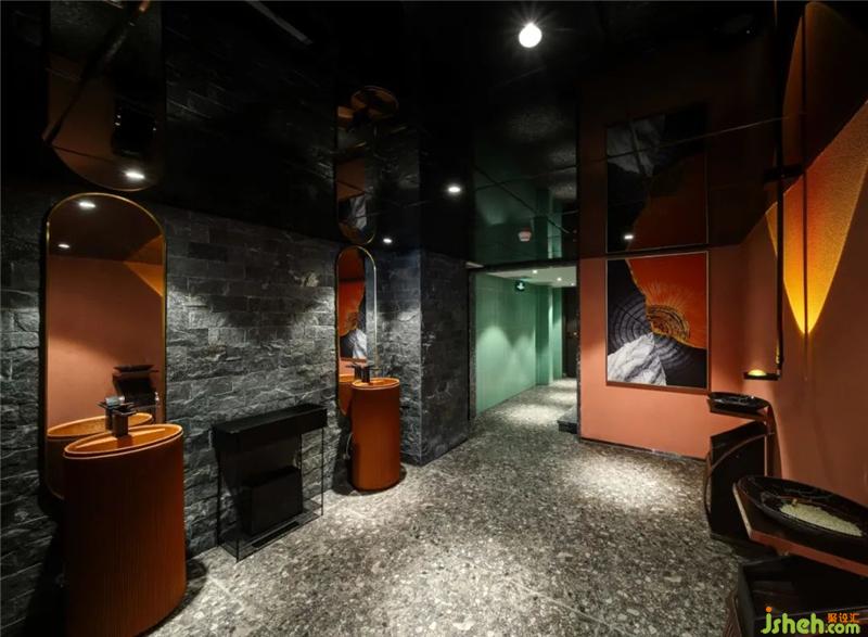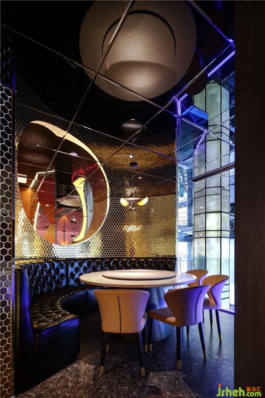 在空間中,有許多有意思的打卡區(qū):進(jìn)門水吧臺(tái)的星空頂、玻璃扶手的旋轉(zhuǎn)樓梯、二樓包間區(qū)等等;自帶打卡點(diǎn)的門店,會(huì)帶來(lái)許多來(lái)自朋友圈的免費(fèi)流量燒烤裝修設(shè)計(jì)。