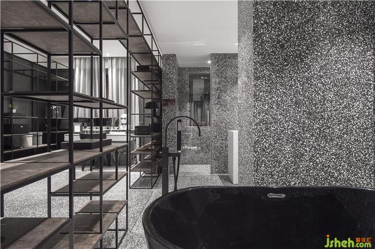 大膽而多變的幾何線條變化,充滿設(shè)計感和韻律感,與簡潔的水磨石搭配,成為空間的視覺焦點。