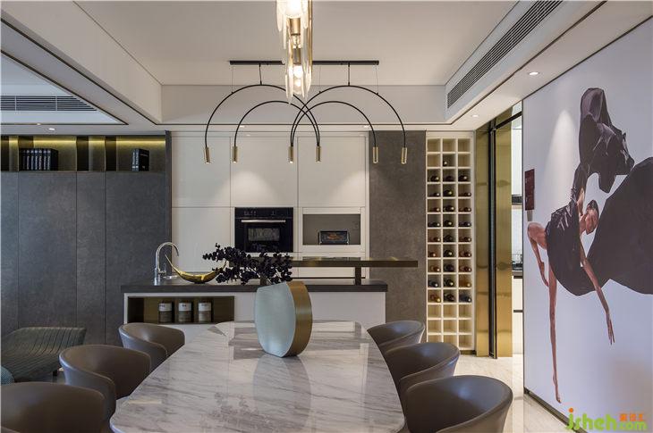 餐廳的巨幅人物肖像剪影,記載了房間女主人的最美芳華。