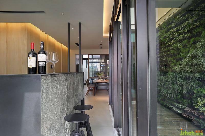臺灣南部總是以炙熱日光見長,室內(nèi)設(shè)計(jì)師將透天別墅結(jié)合此極大優(yōu)勢,利用大量的綠色植栽與玻璃建材,佐以色調(diào)清爽的木質(zhì)與大地色軟件點(diǎn)綴,創(chuàng)造充滿質(zhì)感卻不失悠閑的度假氣息。 由于樓層與坪數(shù)足夠,室內(nèi)設(shè)計(jì)師將玄關(guān)及休閑、接待區(qū)域與居住成員活動的主要公共空間切開,以開放設(shè)計(jì)串連客、餐廳與廚房,更拓增客廳開窗面積,大幅度提升公共空間明度,更在戶外庭園納入植生墻設(shè)計(jì),兼具環(huán)保與美觀機(jī)能。利用灰玻拉門切分廚房與餐廳場域,廚房內(nèi)部搭配附有水槽與加熱功能的中島吧臺,增進(jìn)烹飪的流暢度與互動性。客廳以鑿面石皮電視墻作為沉穩(wěn)的視覺份量,與戶外的翠綠植栽引入大量自然休閑的氣息,更擺上高度相襯的高腳椅,作為戶外觀景用途,蘊(yùn)藏著時(shí)尚的酒吧風(fēng)格。私領(lǐng)域針對不同的需求,以清爽的色調(diào)與木材與日光相互呼應(yīng),位于閣樓頂?shù)目头靠臻g更多了宛如西方電影常見的冒險(xiǎn)氛圍。設(shè)計(jì)團(tuán)隊(duì)更別出心裁在頂樓空中花園打造了夢幻玻璃衛(wèi)浴,玻璃天窗無論是日光浴或觀星,都讓人覺得浪漫至極!