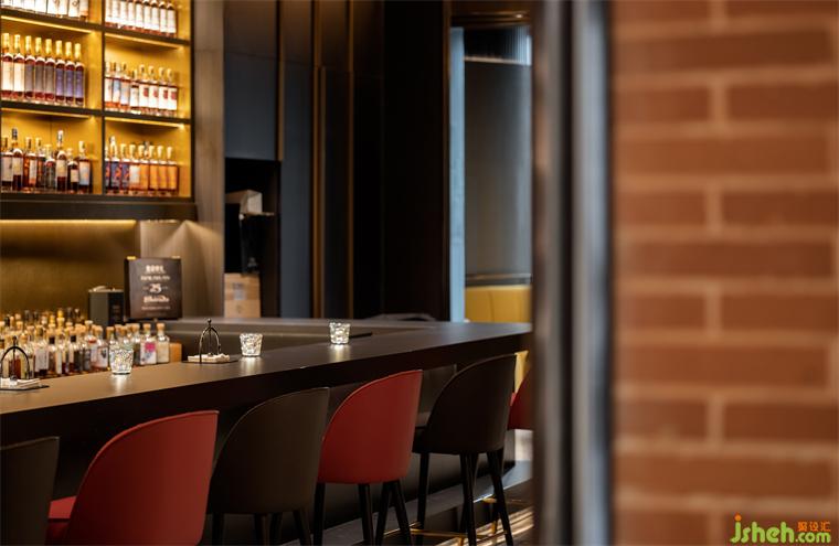 空間整體以來自全球各地的威士忌為背景,餐廳設(shè)計(jì)在結(jié)合簡(jiǎn)約線條鍛造簡(jiǎn)約而貴族奢華的空間體驗(yàn),暗綠、深褐、深銅色等暖色系的大量運(yùn)用,使得場(chǎng)域極富時(shí)尚及穩(wěn)重氣息。