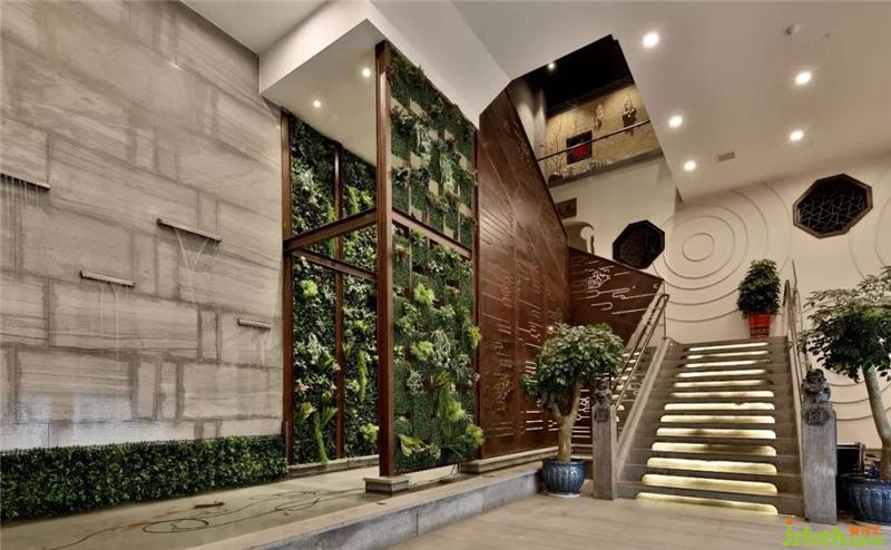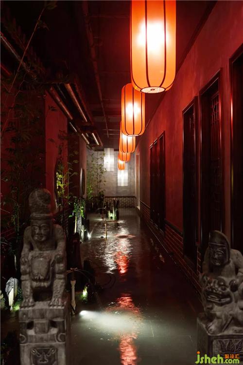 進(jìn)入大門,宛若園中小景,潺潺的流水自墻而下,順流望去,遠(yuǎn)方的墻面似泛起漣漪,一圈圈的水波紋似隨聲而起,隨風(fēng)而蕩,隨心而駐;拴馬樁上雕刻的瑞獸等待著您的到來,鋼板上雕刻的祥云伴您騰風(fēng)之上;