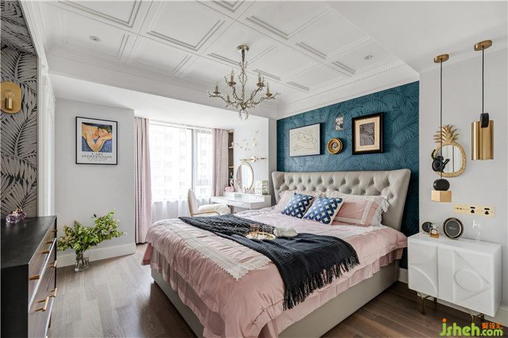 床背景內(nèi)嵌的壁紙,則與入戶玄關(guān)呼應(yīng)了起來,床頭組合畫有現(xiàn)代抽象的,也有復(fù)古精致的,還有業(yè)主自己的照片與金屬掛框進(jìn)行組合搭配,用心而又獨(dú)特。