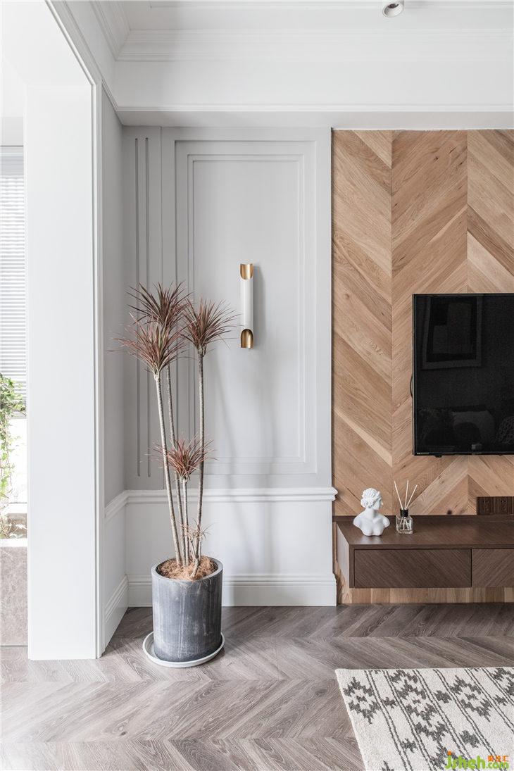 整體空間以灰白為主要色系,中性的色系,體現(xiàn)業(yè)主對(duì)寧?kù)o美好的向往?;野椎诺目臻g,許多細(xì)節(jié)隱入其中,魚(yú)骨地板的墻面鋪貼及石膏板護(hù)墻的交迭運(yùn)用,使得立面在細(xì)節(jié)處理上更顯細(xì)膩。
